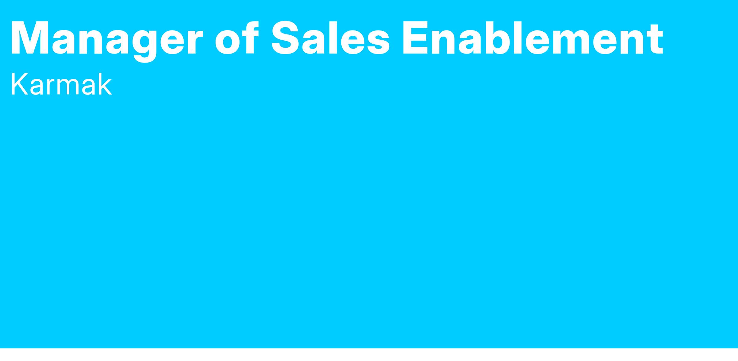 As the Manager of Sales Enablement, you will be the driving force behind improvement of sales effectiveness and efficiency at Karmak. This position will empower our sales team with the tools, content, training, and resources needed to increase productivity, effectiveness, and revenue growth. Reporting to the VP of Sales, you'll own the design, implementation, and management of enablement programs that equip our sellers and client success managers with the knowledge, content, and coaching they need to succeed. You will partner closely with sales, marketing, product, and customer support to align on messaging, methodology, and market motion. This is a unique opportunity to shape enablement from the ground up, in a high-impact role that connects strategy and execution across the revenue engine.