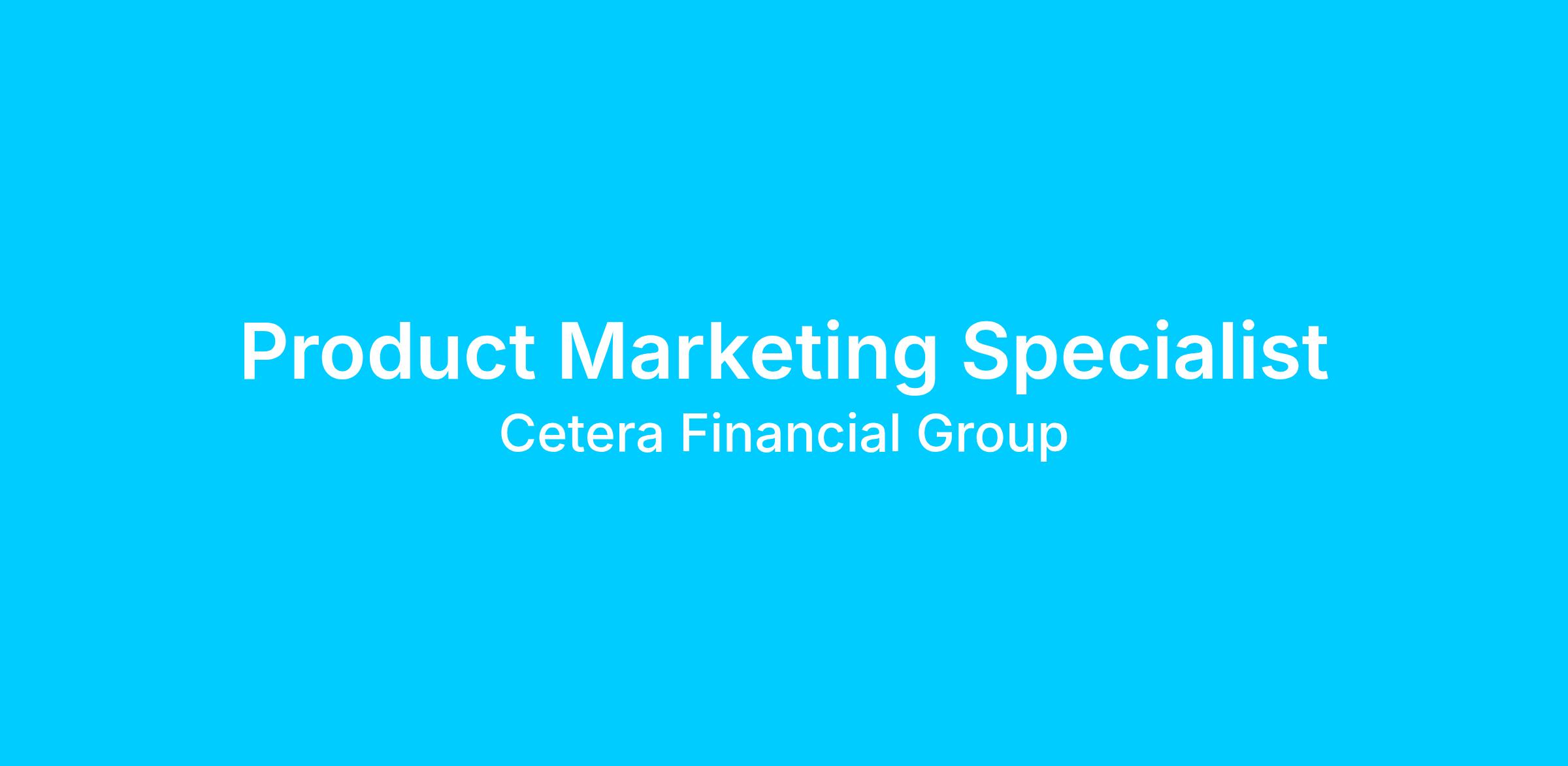 DescriptionCetera Financial Group (CFG) is seeking a Product Marketing Specialist who will be responsible for executing marketing tactics to our captive financial professional audience to drive revenue growth and adoption of Cetera’s wealth management solutions. This role will work closely with the Director, Product Marketing to align marketing efforts to objectives set by leaders of the Advisory Experience and Growth teams to help execute plans and tactics for the business outcomes to be achieved. This is a hybrid role, located in Dallas, TX.