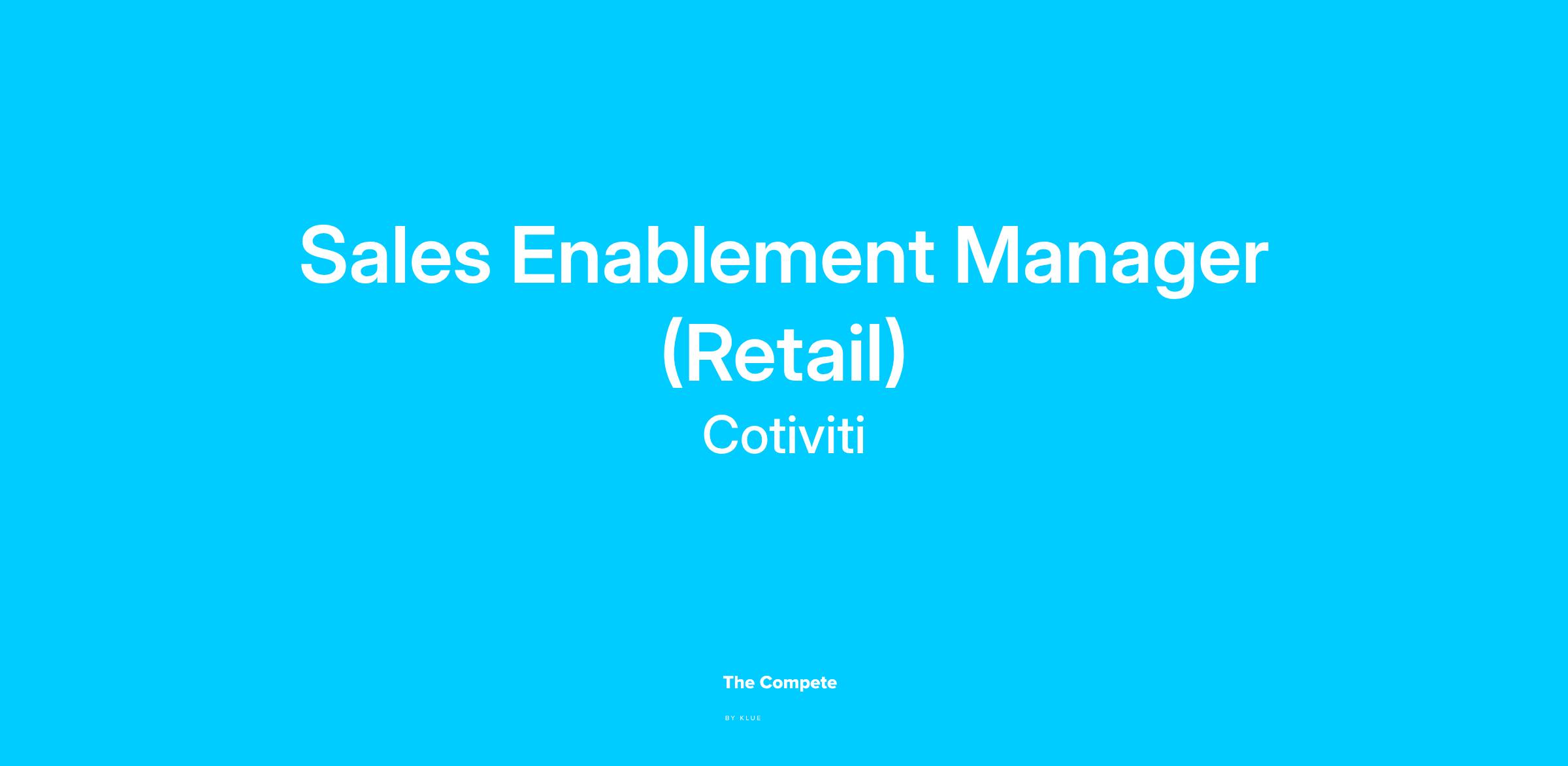 The Sales Enablement Manager is a member of the Global Retail Go-to-Market (GTM) team and reports to the VP, Client Engagement. The GTM team is focused on: 1) driving quality growth, 2) accelerating sales productivity, and 3) generating revenue.
