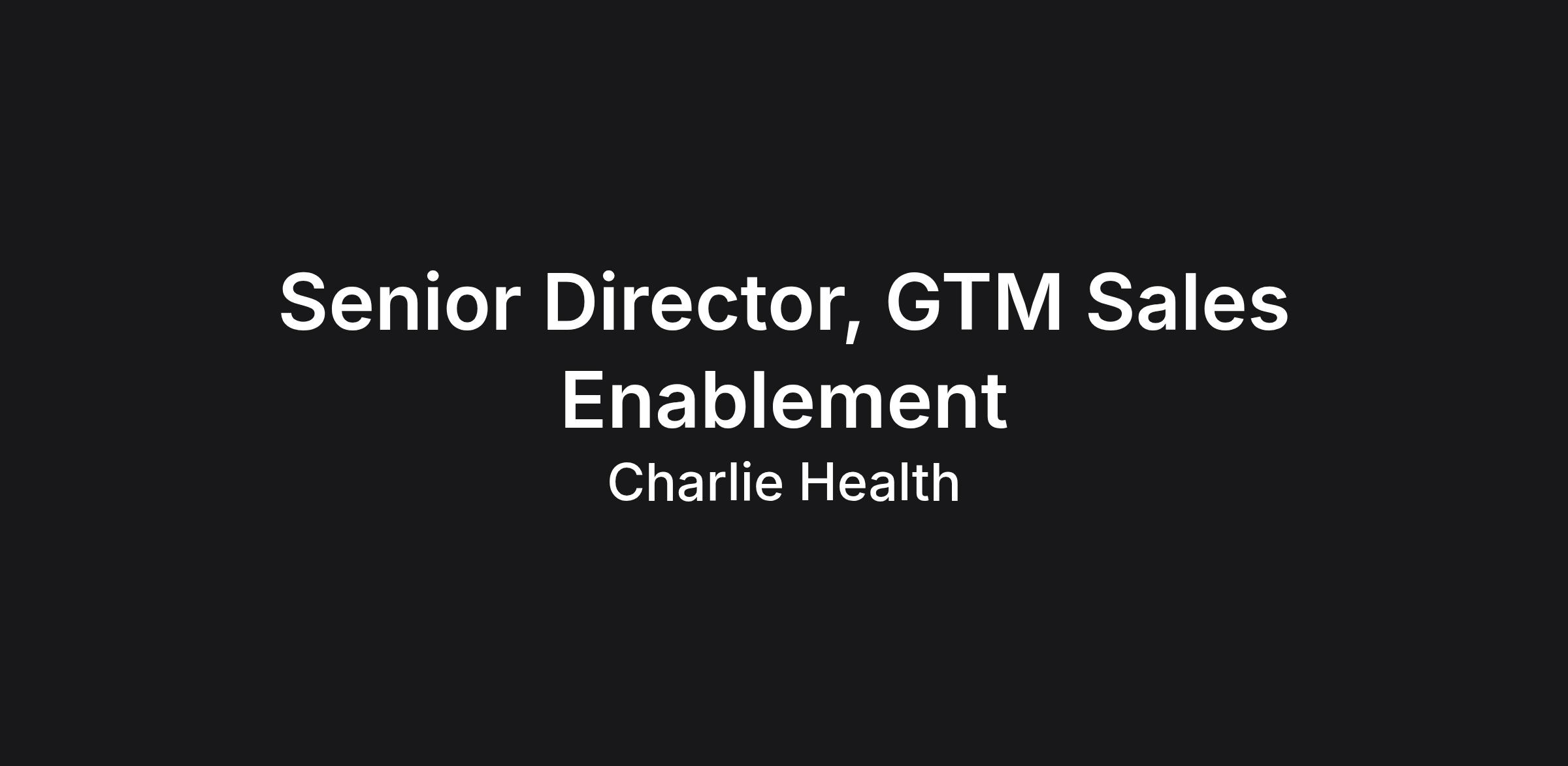 The Senior Director of GTM Sales Enablement will report to and directly support the Chief Revenue Officer and oversee all training, internal communications, change management and employee experience initiatives for go-to-market teams at Charlie Health. This role will manage a team and work closely with cross-functional leaders in order to understand the needs of and build tailored programming for Outreach, Partnerships, Admissions, Clinical Admissions, and Care Experience teams at Charlie Health.