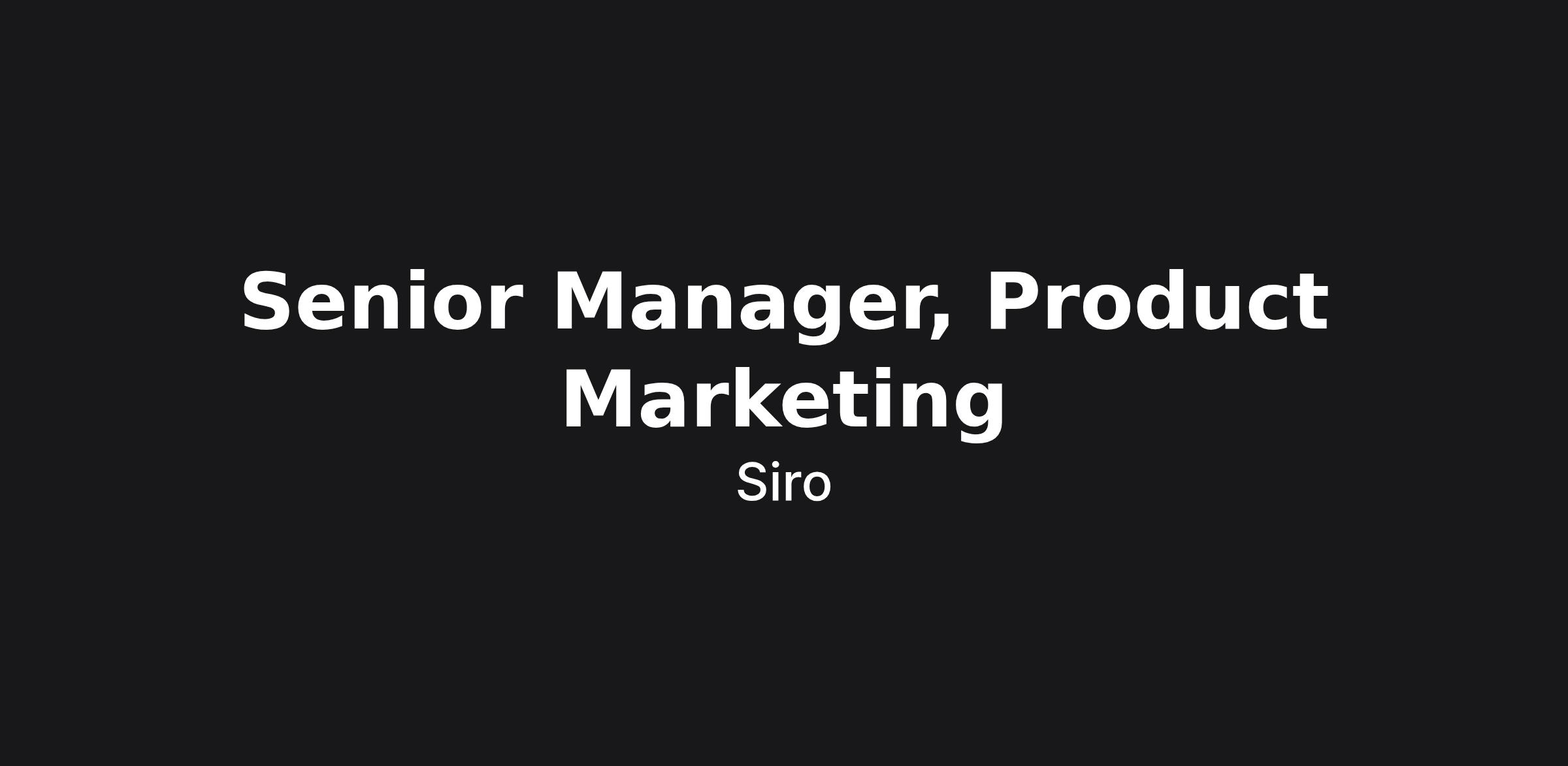We are seeking a Senior Manager, Product Marketing to own how Siro shows up in the market and how our commercial team sells the product. You'll partner closely with Product, Sales, and the rest of GTM leadership. This is a senior IC seat with broad scope — positioning, launches, pricing and packaging, sales enablement, personas, and category narrative.