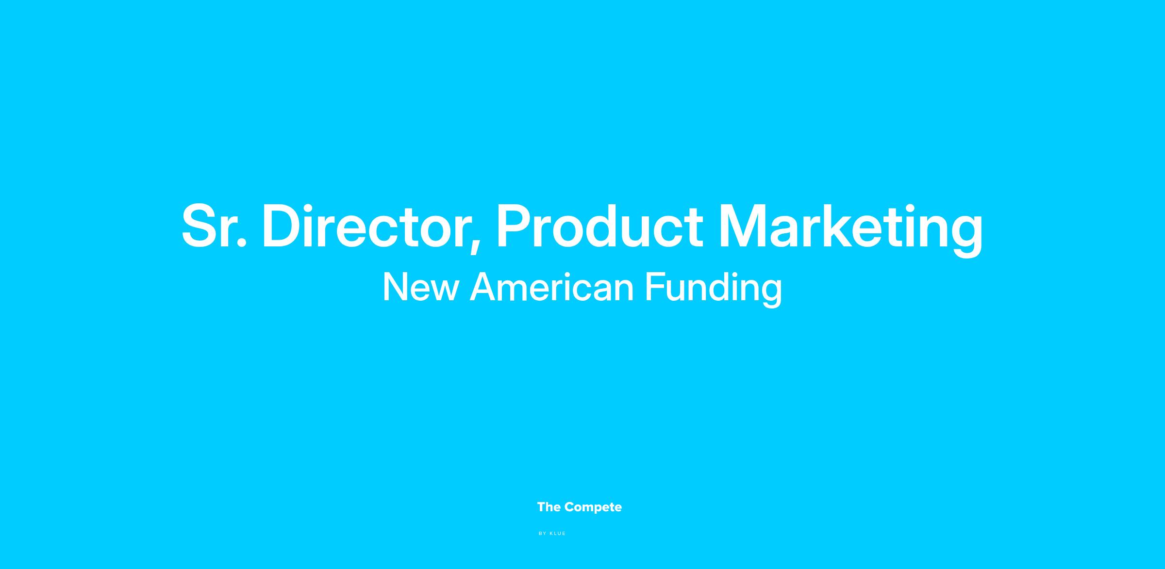 New American Funding (NAF) is a nationwide mortgage lender committed to helping individuals and families achieve their homeownership goals. We are seeking a strategic and results-driven Senior Director of Product Marketing to join our dynamic team. This experienced leader will oversee a team of product marketers and collaborate cross-functionally to bring new platforms, products, programs and partnerships to market.