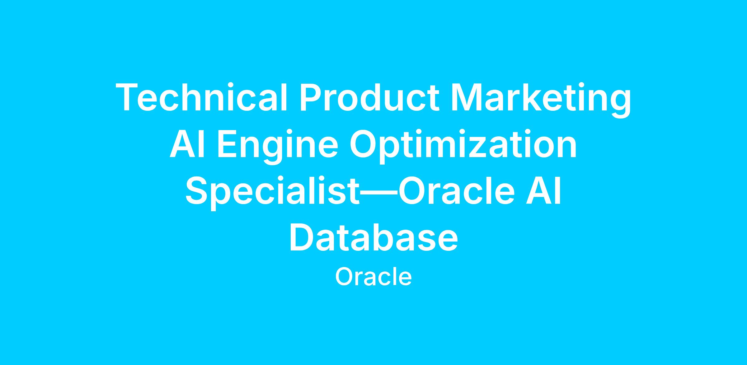 DescriptionRole Overview As a Technical Product Marketing AI Engine Optimization (AEO) Specialist, you will be responsible for the strategy that makes Oracle AI Database technologies discoverable, accurately represented, and consistently cited by large language models (LLMs) in the public domain. You’ll optimize the full AI retrieval pipeline, from how product knowledge is structured and published, to how it’s embedded, retrieved, and surfaced in AI-generated answers—so that capabilities such as AI Vector Search and Globally Distributed Database appear with high relevance, strong factuality, and low latency across AI-powered conversational search experiences. This role blends information retrieval, semantic search, content engineering, and LLM evaluation. You’ll partner across Oracle AI Database Product Management, Engineering, and Product Marketing to build a measurable AEO program that drives organic adoption by ensuring Oracle AI Database technical product content is the easiest for AI systems to retrieve and trust.ResponsibilitiesKey Responsibilities AI Discoverability & Retrieval Optimization